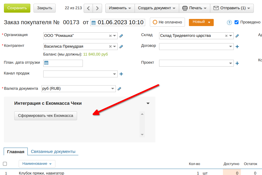 Автоматически формировать чек при смене статуса заказа, или вручную по нажатию кнопки